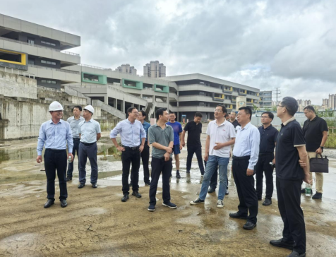 上午9:30,调研团队前往马群初高中项目现场,实地查看了校园目前的基础建设现状,栖霞建设沈总、保障房项目吴总等项目负责人,就该项目概况及建设进度做了介绍。