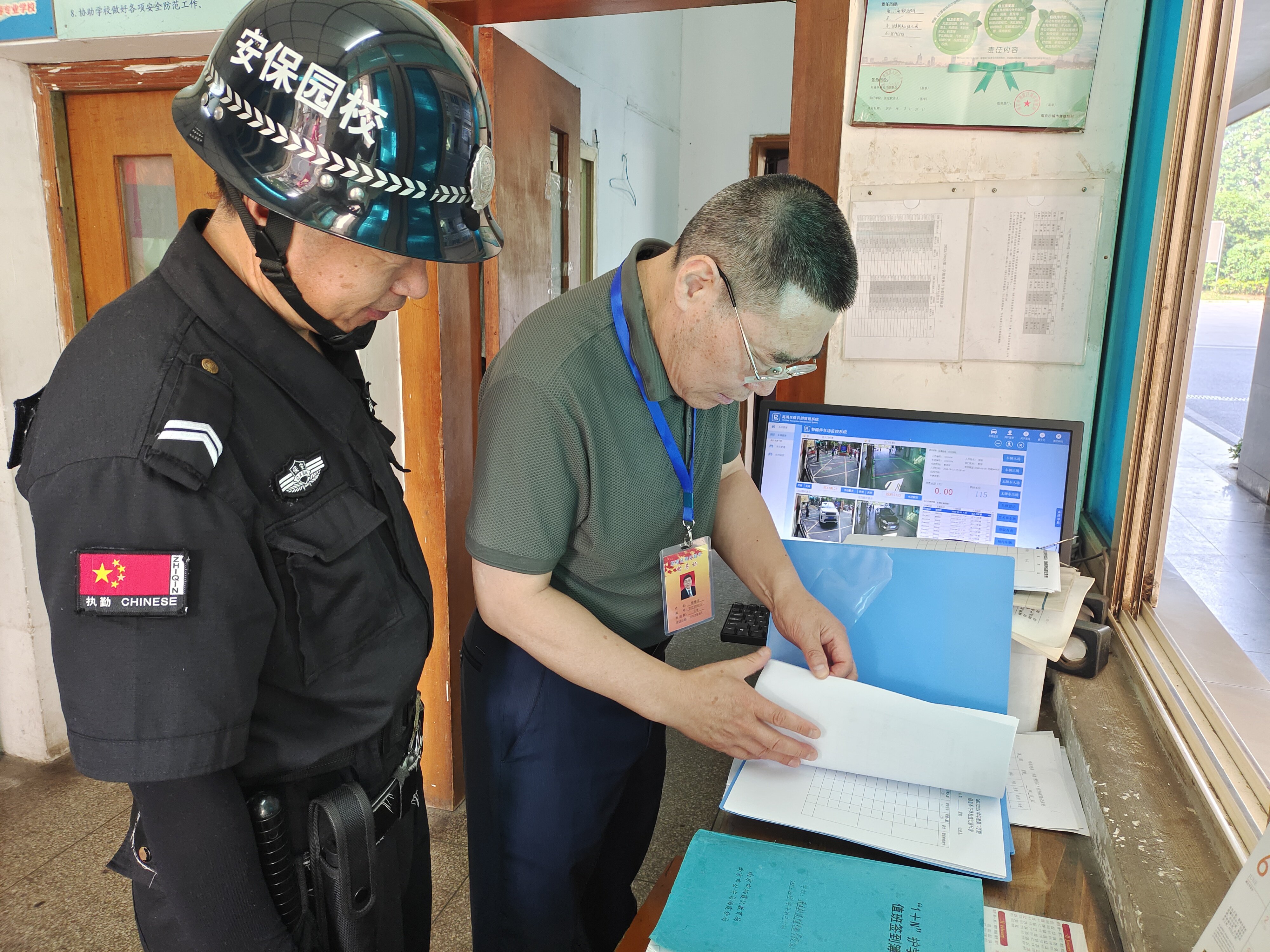 在“常规工作”检查环节,陈督学参与了校区“1+N”护学,查看了门卫室,监控和台账资料,以及校区食堂等重点场所,另外就学校关于防溺水相关方案与落实情况随访了系部德育主任韩平副主任和学工处干事郑金云老师,并结合学生进出校校门管理情况随访了正在执勤的学生会学生。