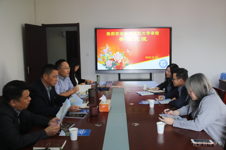 2019年10月24日下午,韩国又松大学高忠义主任、刘珍阳项目负责人、江苏玺礼教育留学部林雅部长等一行来南京新港中专校参观交流。南京新港中专校童礼荣校长、刘俊副校长、机电系施向军主任、培训合作处王敬蓉主任一同出席会议。会议由刘俊副校长主持。
